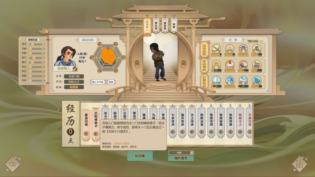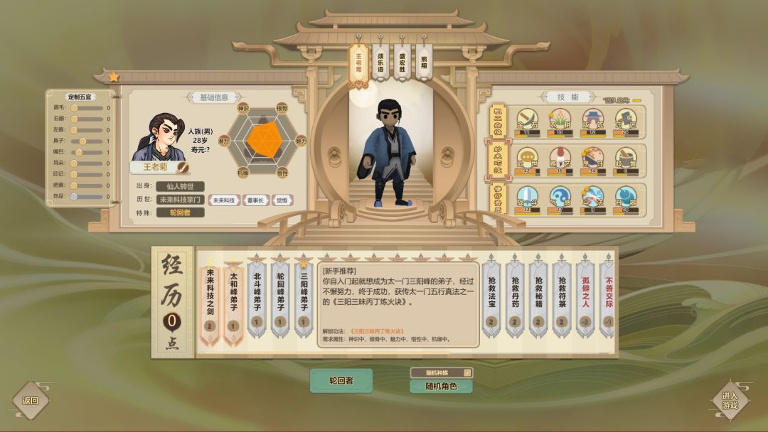 逍遥散人: 耐寒冷、耐高温,技能熟练,擅长挖掘、建筑、锻造、制造、感知、炼药,容易触发工作乐趣。