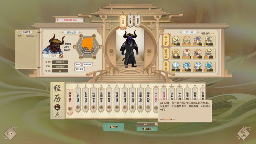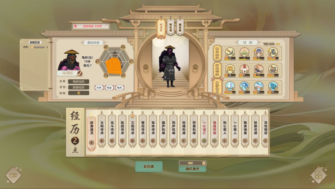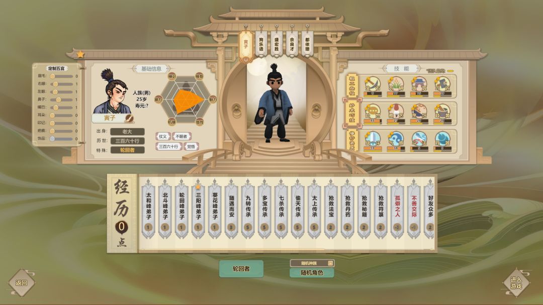 主要从角色选择,地图选择以及功法选择三部分入手