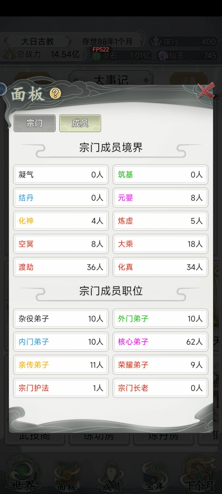 最后退游了,超级宗门虽然只差5亿了,但是太累了,用要我点个不停!!!