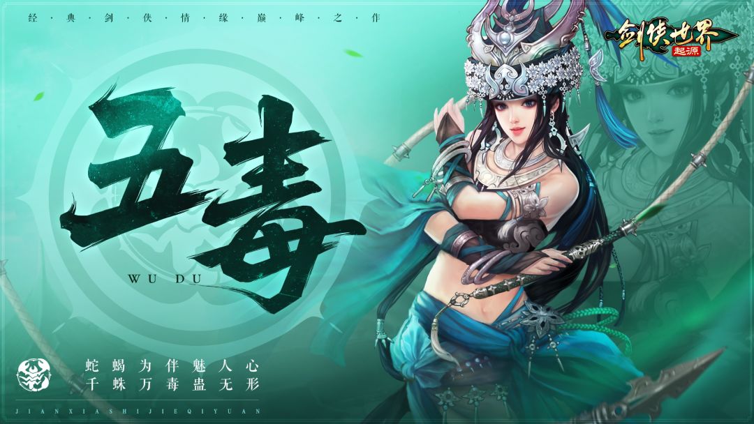 万蛊噬心生涅槃,妙手织天解情丝!全新门派「五毒」上线,12大门派齐聚。五毒五行属木,以掌、刀为武器。刀五毒:爆发、控制,施加负面状态;掌五毒:远程、群攻,持续伤害。