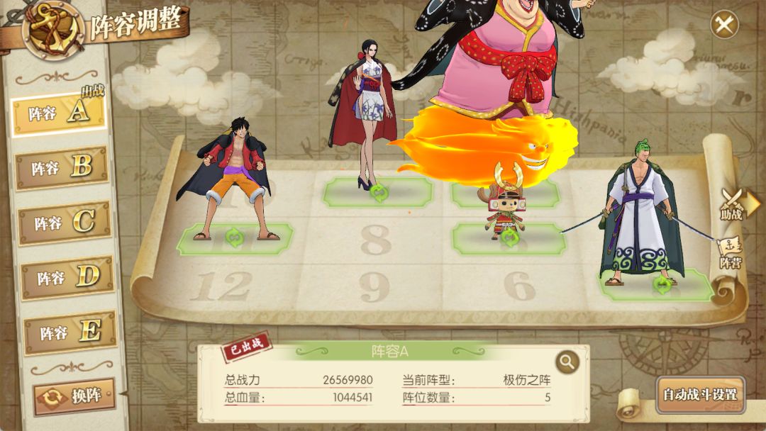 助战带上阿菊,是为了让乔巴第一回合能释放三个技能,从而最大化乔巴的治愈量和辅助增益效果。以及前文提到的让路飞完整释放所有技能的作用。