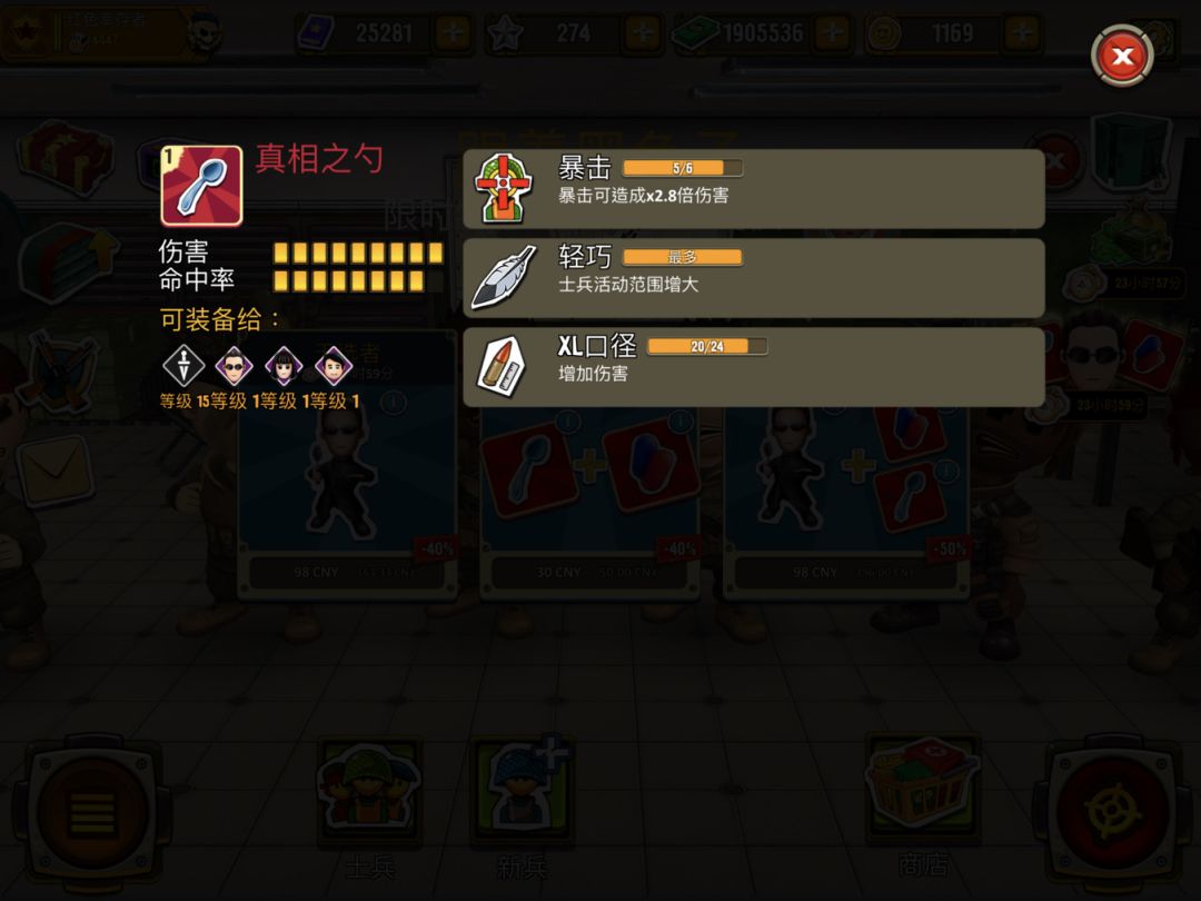 上面这个泡泡就是半肉半输出的,也就一千血左右,甲比较高,一百四,再加上装备加成,勉强够看。。刺客的隐身胶囊只能刺客带,继幽灵狙幽灵散之后的幽灵刺刀,如果你真的准备玩六刺客,这三人都得买,五星兵基础属性高,血防攻都高,可以稍微弥补血量护甲的问题,从而补攻击,天选者和泡泡这两个氪金兵武器都没啥特点,不如小刀,四倍暴击伤害,而且固定几率70暴击,无视精准,其次就是天选者的勺子暴击伤害高,但是暴击率是看精准属性,暴击伤害再高没法触发暴击都是白搭