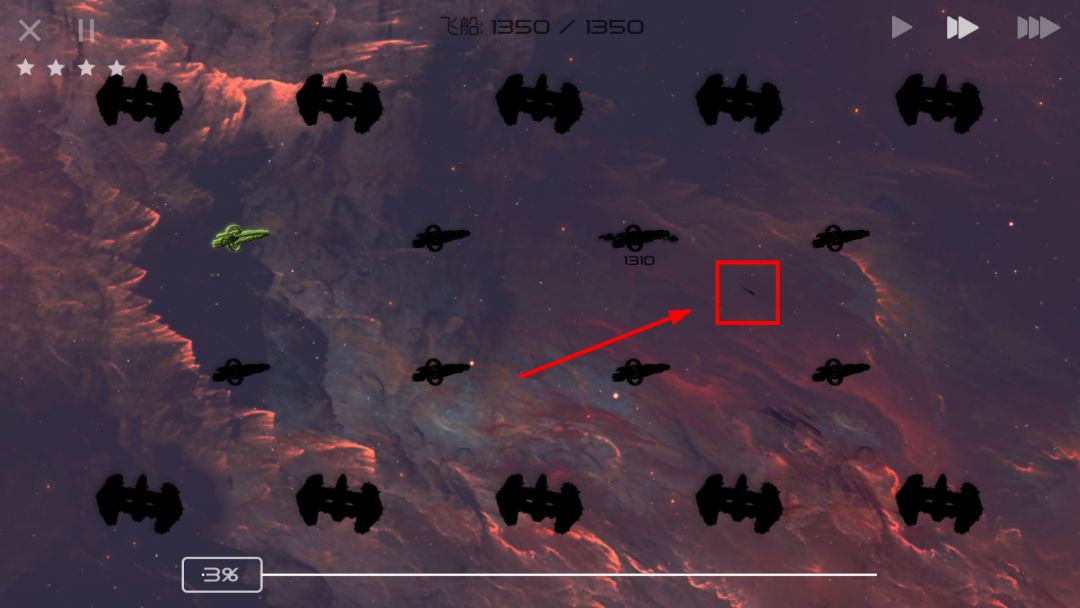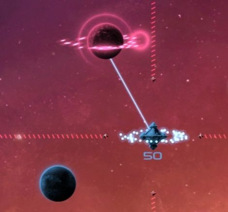 然而,当你拖动一个天体上的舰队飞向别处时,它们首先会发出较为明亮的光(可认为是发动机喷出的火焰),此时飞船不动,然而,它们被判定为“已离开天体”。这时飞船数量消失,它们不能占领星球,也不会脉冲炮被攻击,但已经可以被炮塔等建筑攻击。这个过程持续约0.5秒。