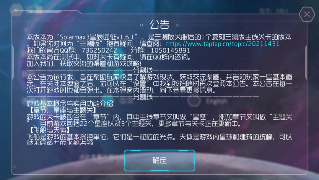 当前最新版星辰远征的开屏公告