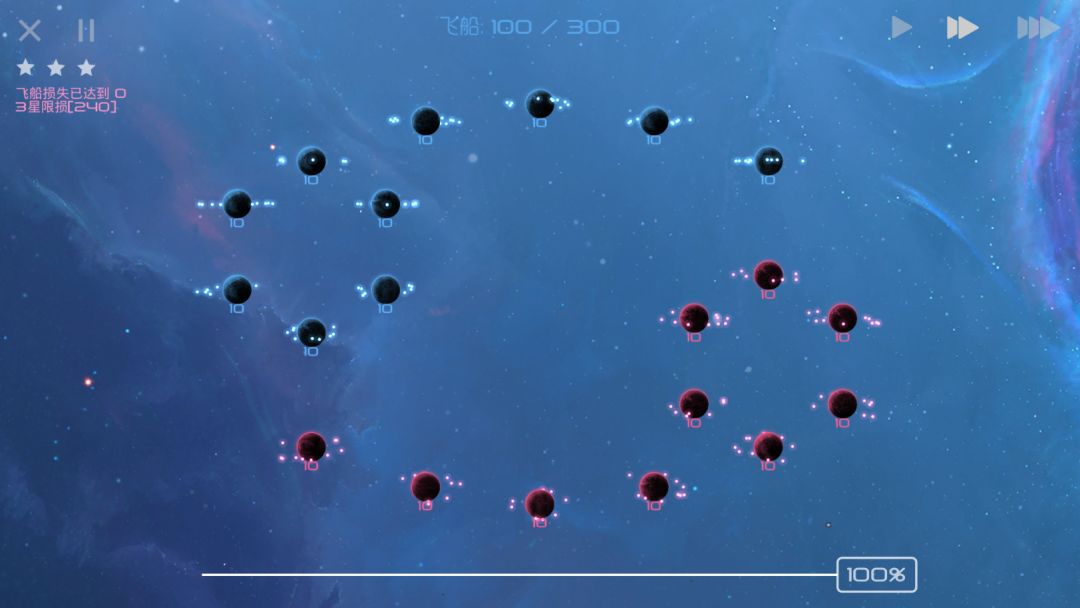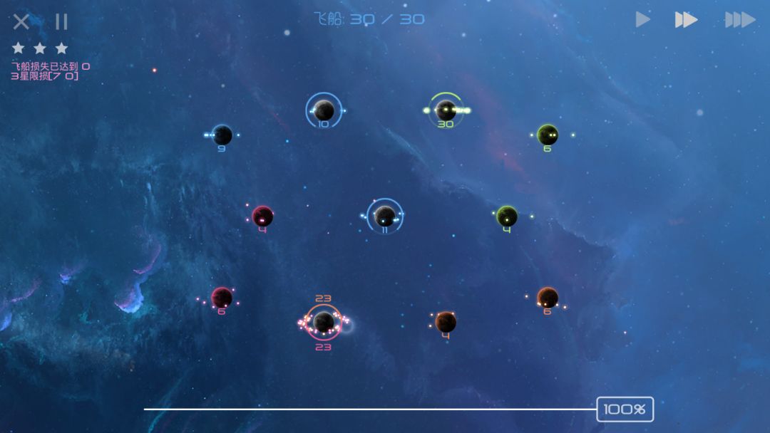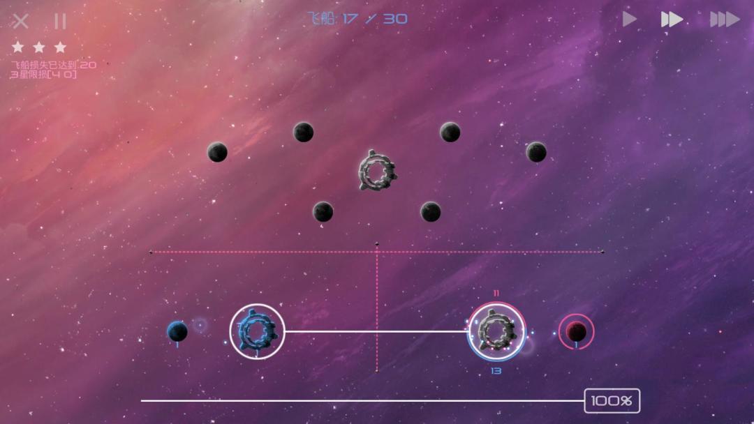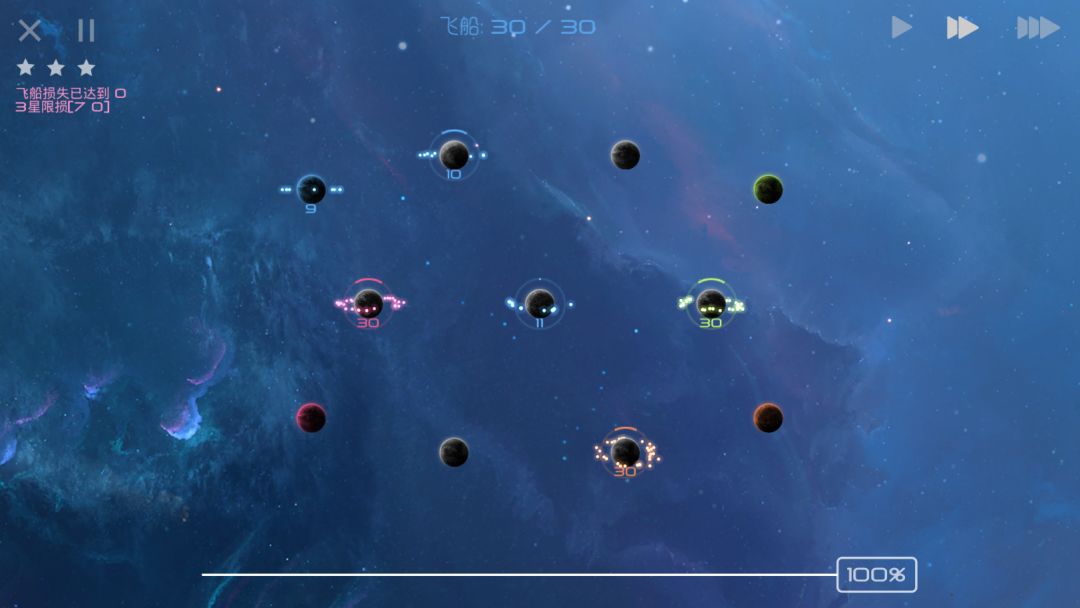 只要我方将每个10飞船舰队都用于锁星,那么敌人的产兵基础将很快消失,即使敌人分兵回防也无法保证自己的星球不被占领。