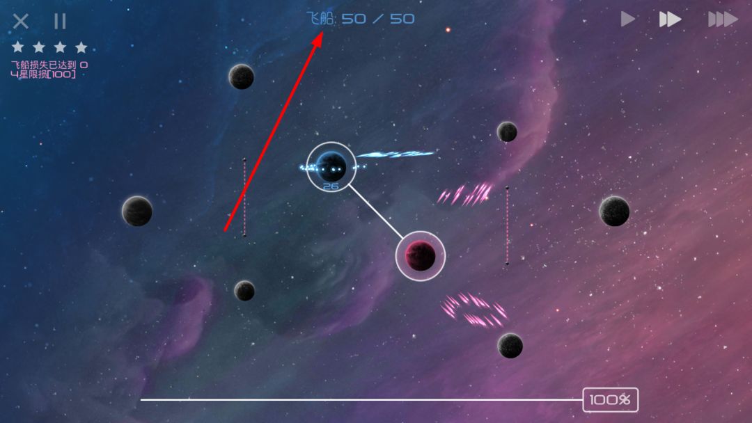 ②不断派飞船去和敌人交战。注意,此时敌人的星球被锁,所以无法生产飞船,也就无法向传送门补充兵力。