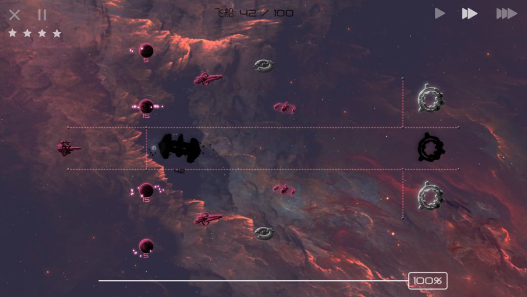 如果你占领了航母,你就会知道什么叫“飞行即是胜利”。航母不断补充正在飞行中的舰队的飞船数量,这时就可以在航母范围内反复横跳补充飞船了。这是玩家通过反复横跳行为能获取到最大利益的情况。