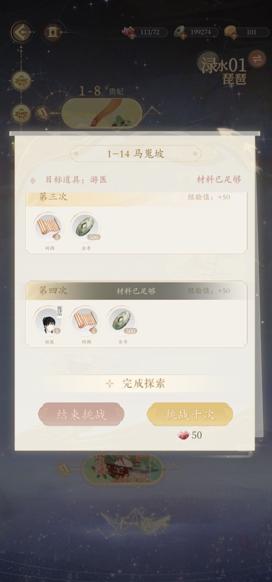 刷材料时可以直接十连,并且不用担心刷多了浪费!!!因为右上角会自动显示你还差几个材料,数量够了会直接停止!好耶!!!!