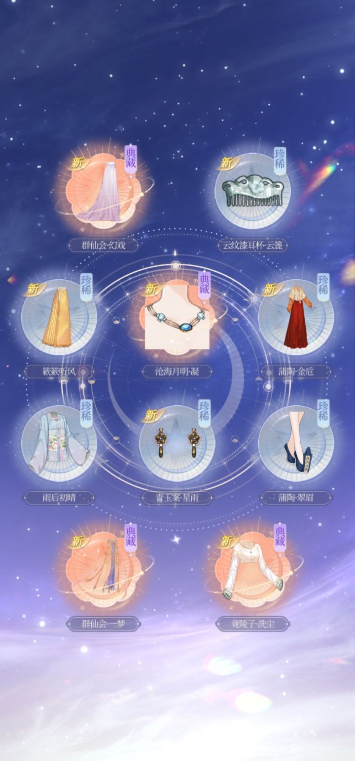 显而易见,这是个换装抽卡游戏,很少女,很清新,有种爷青回的感觉。金马蹄相当于钻石,和珍珠1:1兑换,10金相当于1r,还行。活动卡池是专门的卡劵,和普通池一样都是100金。还有一种我完全没搞明白怎么攒币的星星池,稀里糊涂就有好多星星了(挠头)。