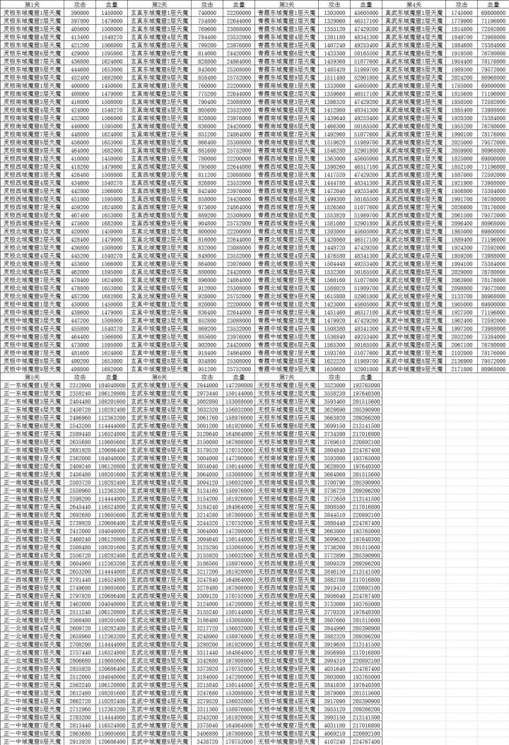镇守得住不代表你打得过魔窟9层,图为1-7关魔窟属性。