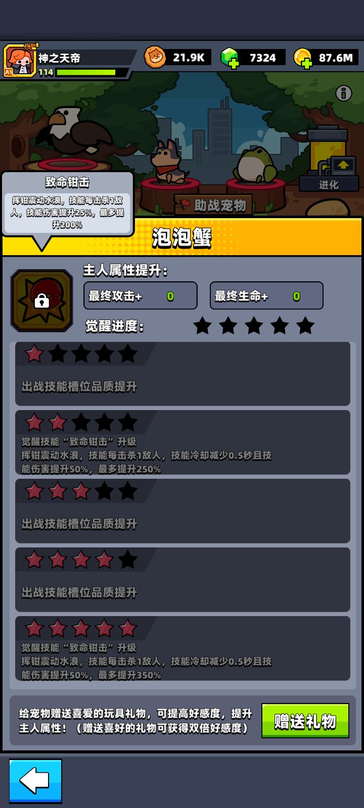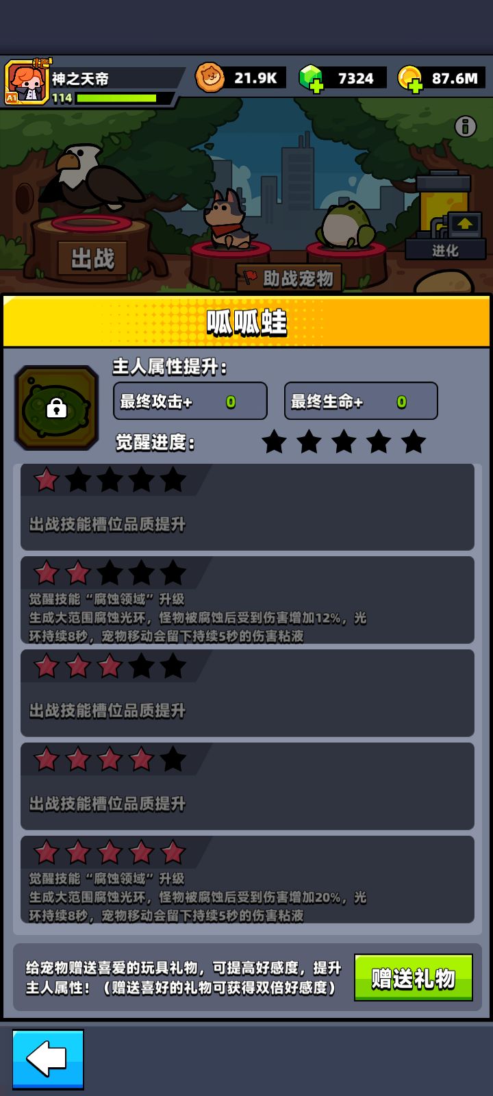 另外青蛙的技能算光环技能,但是没伤害,1级的范围相当于转盘的攻击范围,估计满星才能全屏。