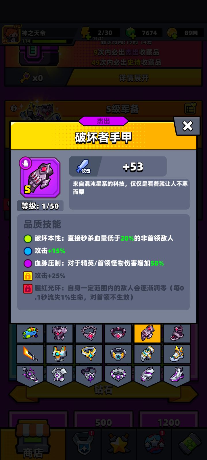 平时装备也就永恒多,区域就要换破坏装了,还要搭配亡者衣服!
