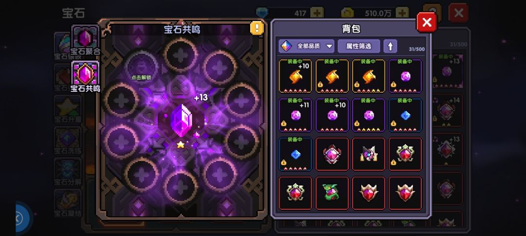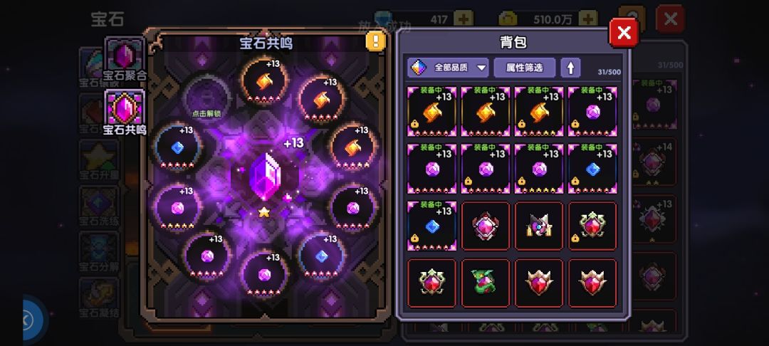 宝石共鸣分两个板块,宝石聚合与与宝石共鸣
