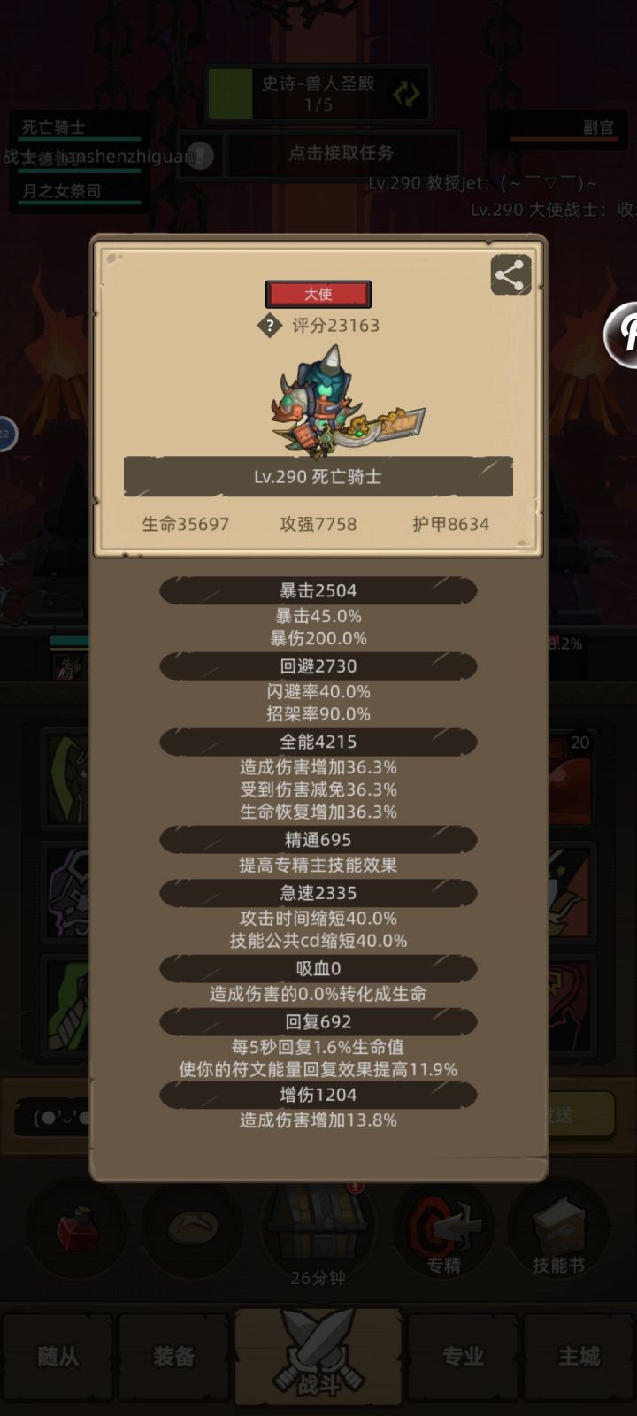 随从:大德鲁伊+月之女祭祀(不是氪佬,这两个随从好获得,且有加攻击和加伤害的技能,血dk只要站的住,伤害什么的肯定越高越好)