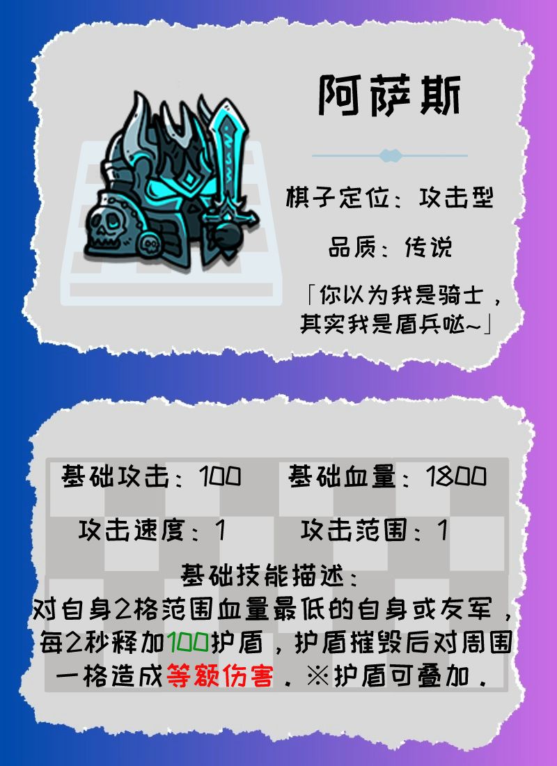 弈士们好啊!小厮今天要给大家介绍的,是前两天刚加入棋馆大家族的新棋子——【阿萨斯】!
