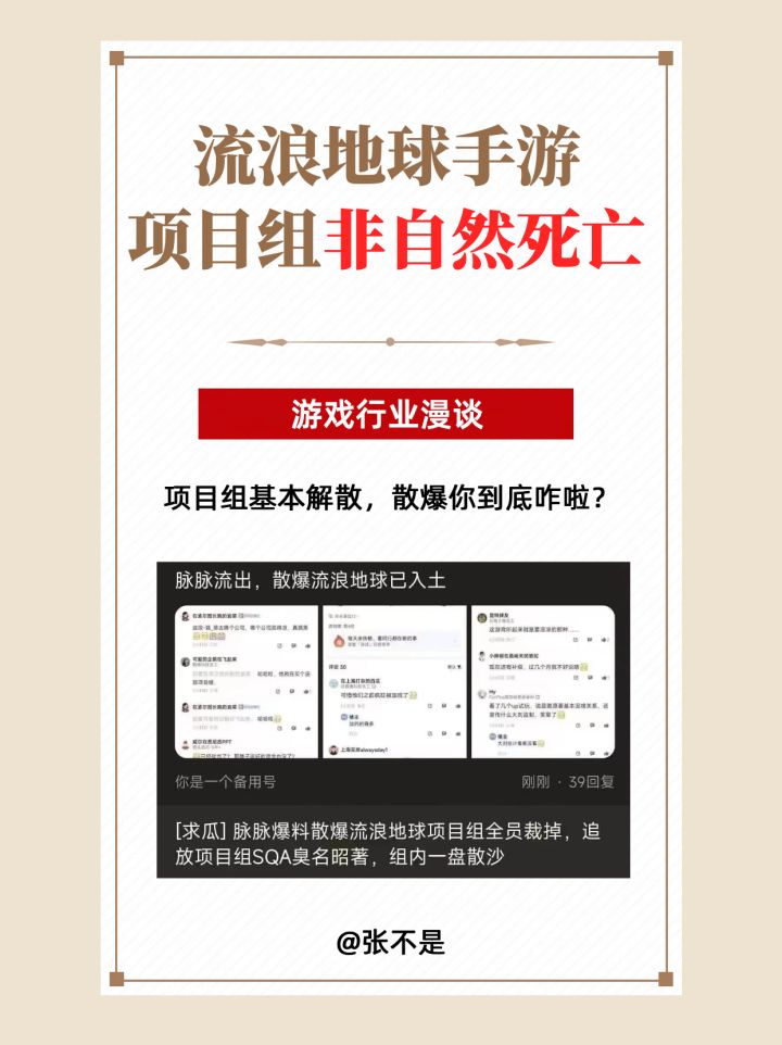 🤔这两天相信不少玩家和业内的朋友,已经看到了这条消息:#散爆 游戏研发的 #流浪地球手游 研发团队已经基本内部宣布解散,相应的发行公司也受到了影响,投出去的资金血本无归...