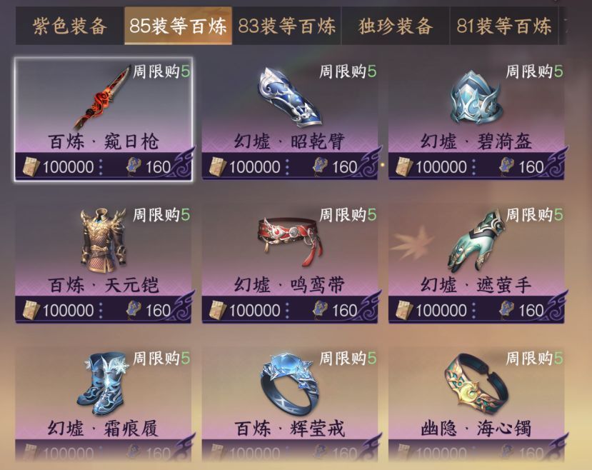 1. 目前的85/86阶百炼装备