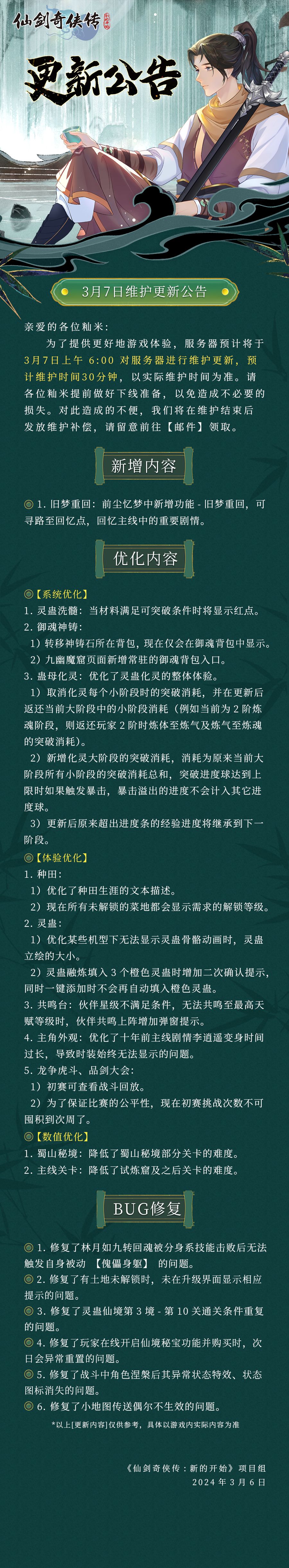 3月7日维护更新公告