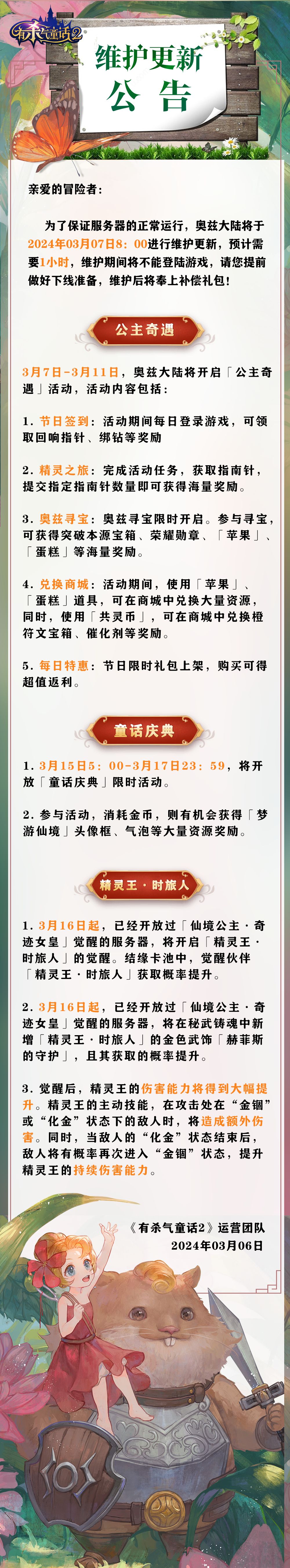 冒险者们好!小红帽这次为大家带来了最新的维护更新公告