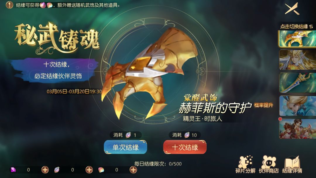 同时,秘武铸魂中新增「精灵王·时旅人」的金色武饰「赫菲斯的守护」,且其获取的概率提升。