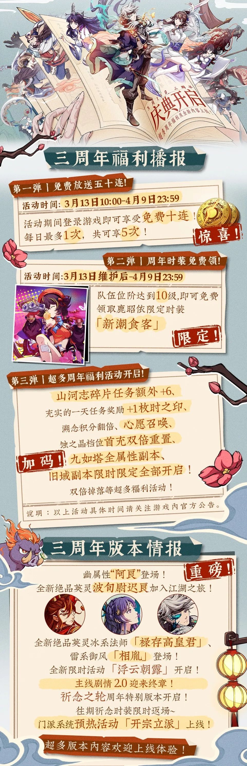 周年限时免费十连召唤活动时间:3月13日10:00-4月9日23:59