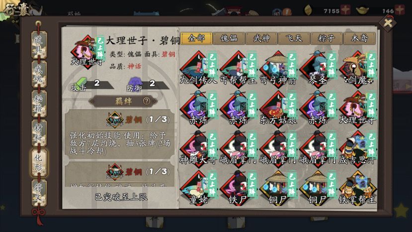 正式玩的第35天,又肝又氪,今天趁着第三弹礼包终于收集完成了,除了武当掌门、九剑传人、琴圣、成吉思汗和康夫人外都满星了,主流化形也快齐了,开心,打卡纪念。终于可以佛系当咸鱼了,目标橙武侠每人三个同名红化,估计要明年去了吧。
