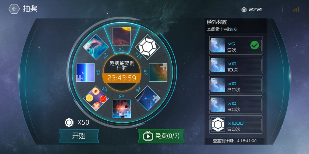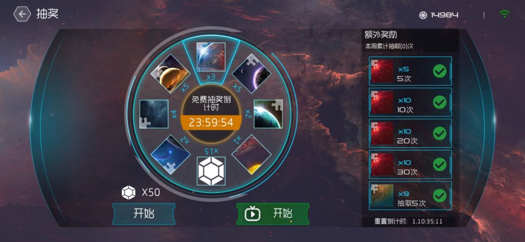 2、抽奖界面出现异常:原本该显示的7次看广告上限没有显示,而且右侧本该有的1000金币奖励消失,全部被替换成碎片。碎片显示已全部领取,但实际并没有领取,只有达到(没有显示出来的)抽奖次数后才可以领取相应的碎片(抽奖次数的显示一直为0)。
