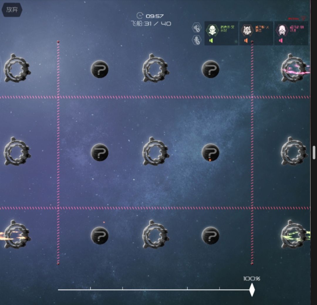 8、一方在没有天体,30秒后即将被系统抹除的这一刻,如果飞船在飞行中,则有一定可能系统无法消除全部飞船,但显示战败。(如果飞船处于天体上也有极小概率发生这种情况。)如果该方为玩家,则无法操控剩余飞船;如果该方为AI,则可以。(换句话说,AI其实在这种情况下获得了自由。)