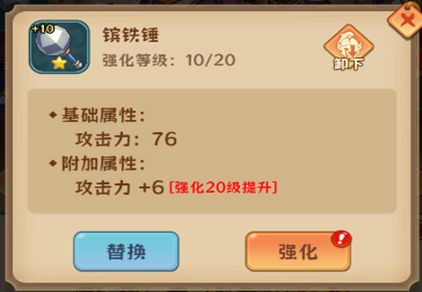 在游戏初期,装备主要能提供攻击力、生命值和防御力这三种属性。想割草更舒畅一些的话小编推荐主公可以优先把加攻击力的武器的等级强化高一点,这里又涉及到一个小技巧了(蓝色品质及以上的装备强化等级为10的倍数时会提供一些附近属性,装备品质越高附加属性的效果越强),我们尽量每次强化后让它能达到解锁附加属性的效果。