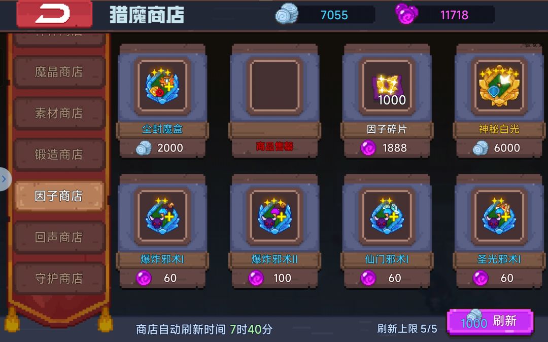 这个商店售卖的因子,在还没开启6孔的时候,可以把用猎魔币购买的全部买完,可以刷新5次,也就是可以买24个因子,根据自身条件购买,开了6孔以后不买。用魔晶购买的都是牙或者邪。在自己有基础,能轮车的时候,可以适当购买自己需要的牙去轮车。因人而异吧,有的人可能觉得亏,那就不买。推荐购买的只有金色的牙,仙罪光三种,如有万灵流派的萌新,万灵牙也是可以买的。紫色的牙和邪,不管是啥都不买。