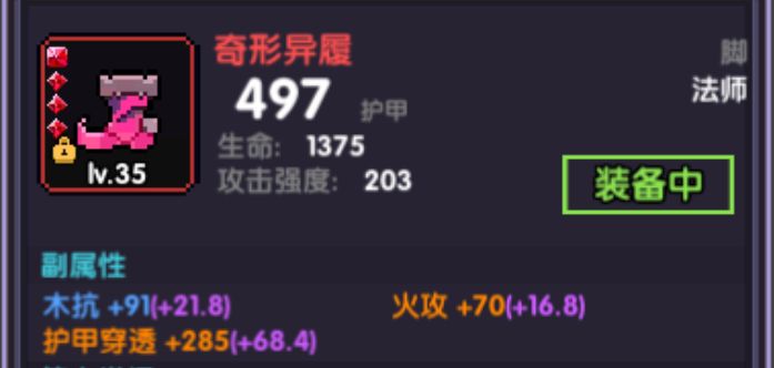 鞋子(奇形异履):爆甲与打桩机出伤时处于无法普攻装填,所以不用缴械披风也能触发鞋子45技能伤害