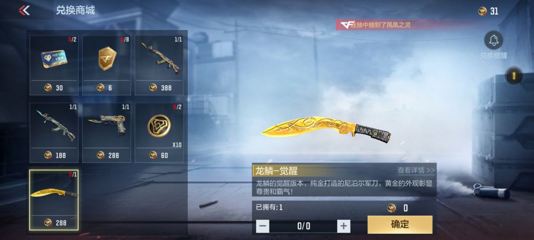 3月1日,龙鳞觉醒崭新登场,这把年代感十足的近战终于迎来了觉醒。值得注意的是,龙鳞觉醒是一把单独的英雄级近战,直接使用288龙年CFM币就能进行兑换。