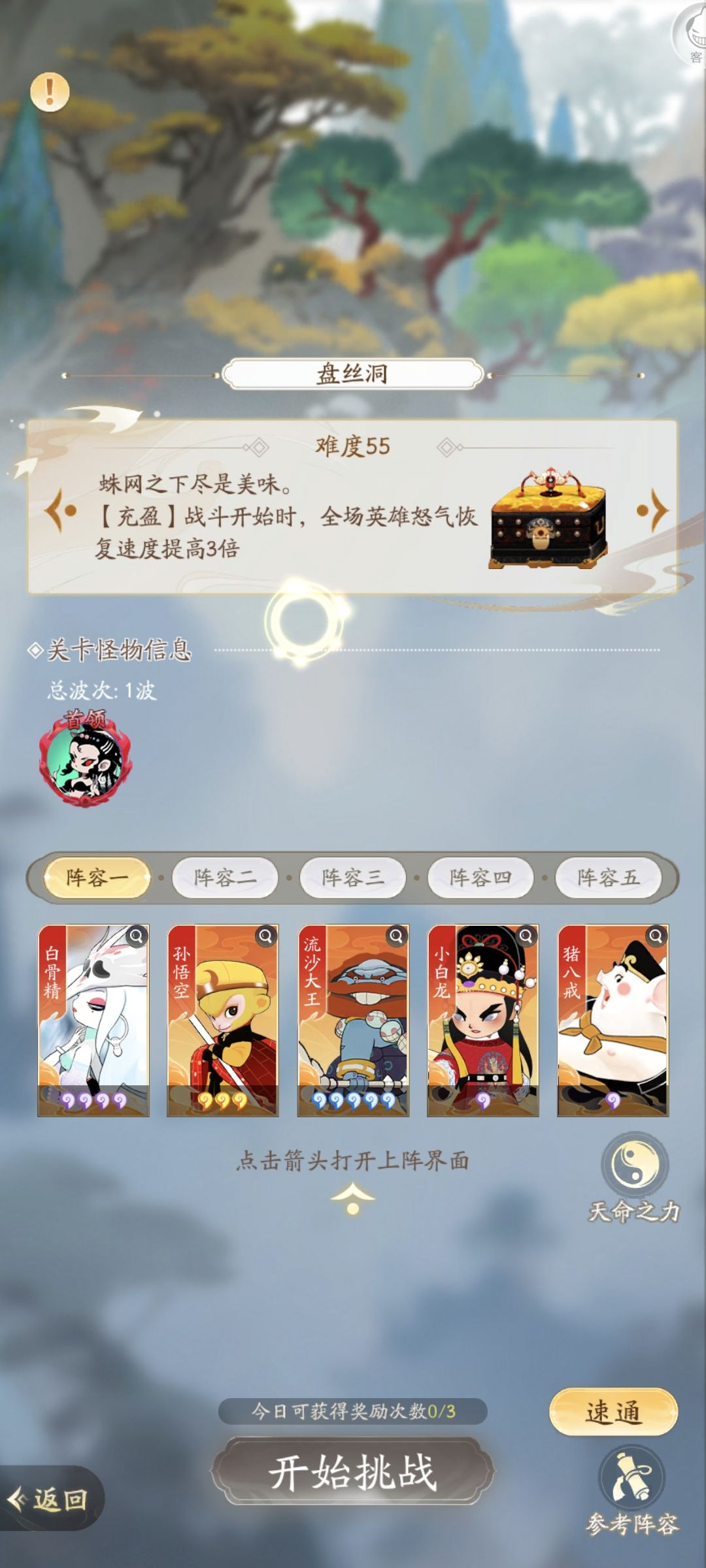 法天象地盘丝洞阵容推荐:孙悟空,白骨精,猪八戒,小白龙,流沙