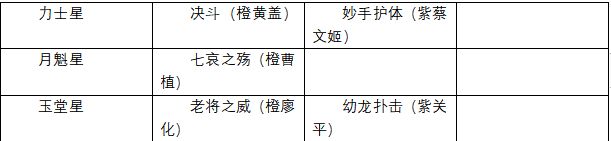用力士星过几关游历副本后系统会再免费赠送一个月魁星,获取到月魁星后上阵继续打游历副本,等到游历副本打不过时,不要一直挑战浪费次数,用通关游历副本得到的帖子给子嗣力士星和月魁星换技能,学习技能见下表