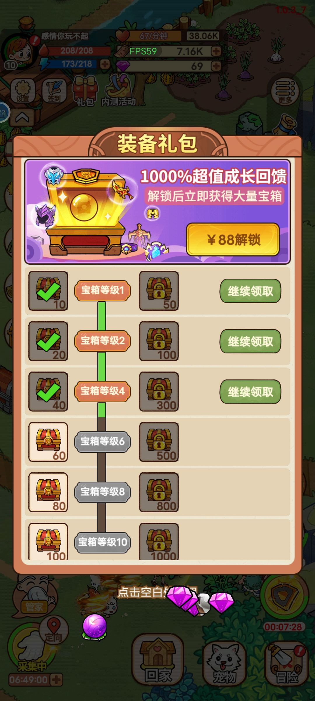 1.后山自动采集,必须人在线采集,这个开自动采集就有点鸡肋,不如改成月卡或者终身卡可以享受离线采集,然后就是采集的耐久度根本不够用,正常采集2个小时就用完所有耐久度,也采集不了太多东西。