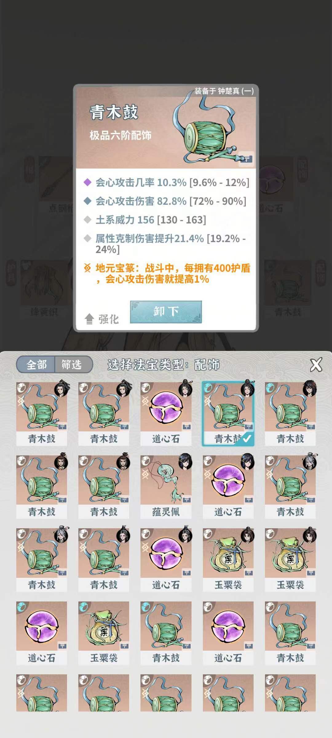 地元宝篆:战斗中,每拥有400护盾,会心攻击伤害就提高1%(叠盾提升会伤,毕业师姐可提升400+会伤)