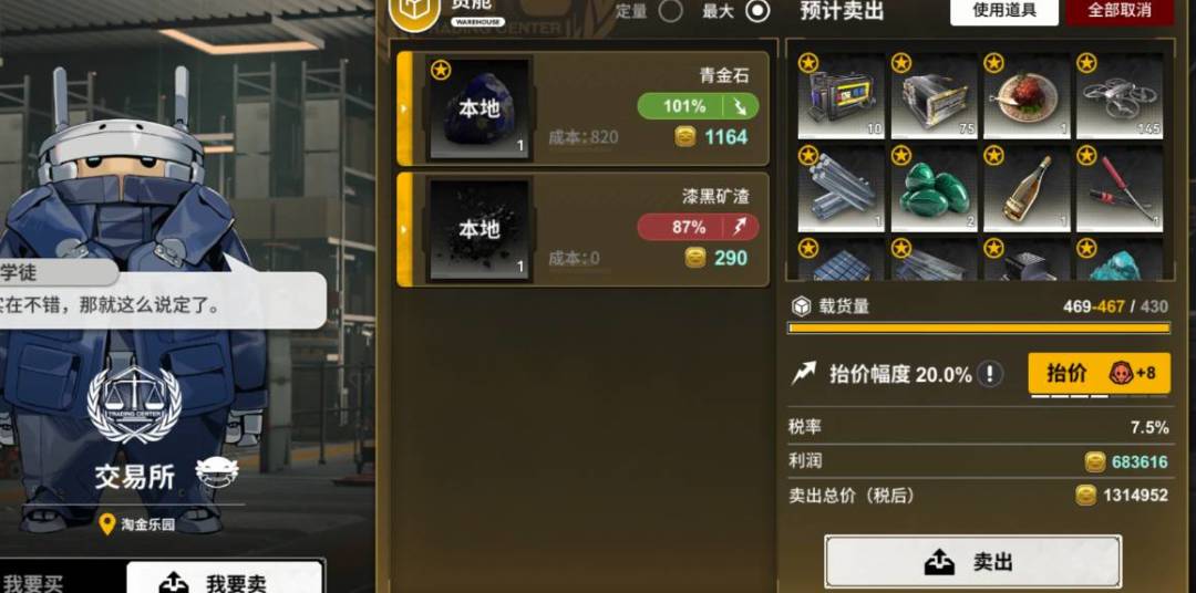 另外我是独狼玩家,不加群的那种,还有个独狼玩家的小技巧,就是仓库的正确用法,仓库要摆经常跑的目标的特产,一样一个,这样你在出发时先看所在地特产价格合适不合适,如果合适再去挑目的地,因为你还要回来的,这时取出仓库那些特产看看哪些价格好就去哪。