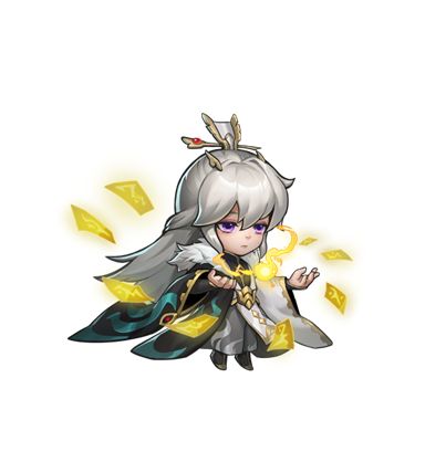 召唤符咒悬浮于自己身边,符咒存在时会周期性攻击周围敌人并使被命中敌人受到符咒灼烧,符咒的威力会随着符咒的数量提高,符咒最多悬浮4张。符咒全部召唤后不会再进行召唤,同时使自身获得缓慢生命恢复。