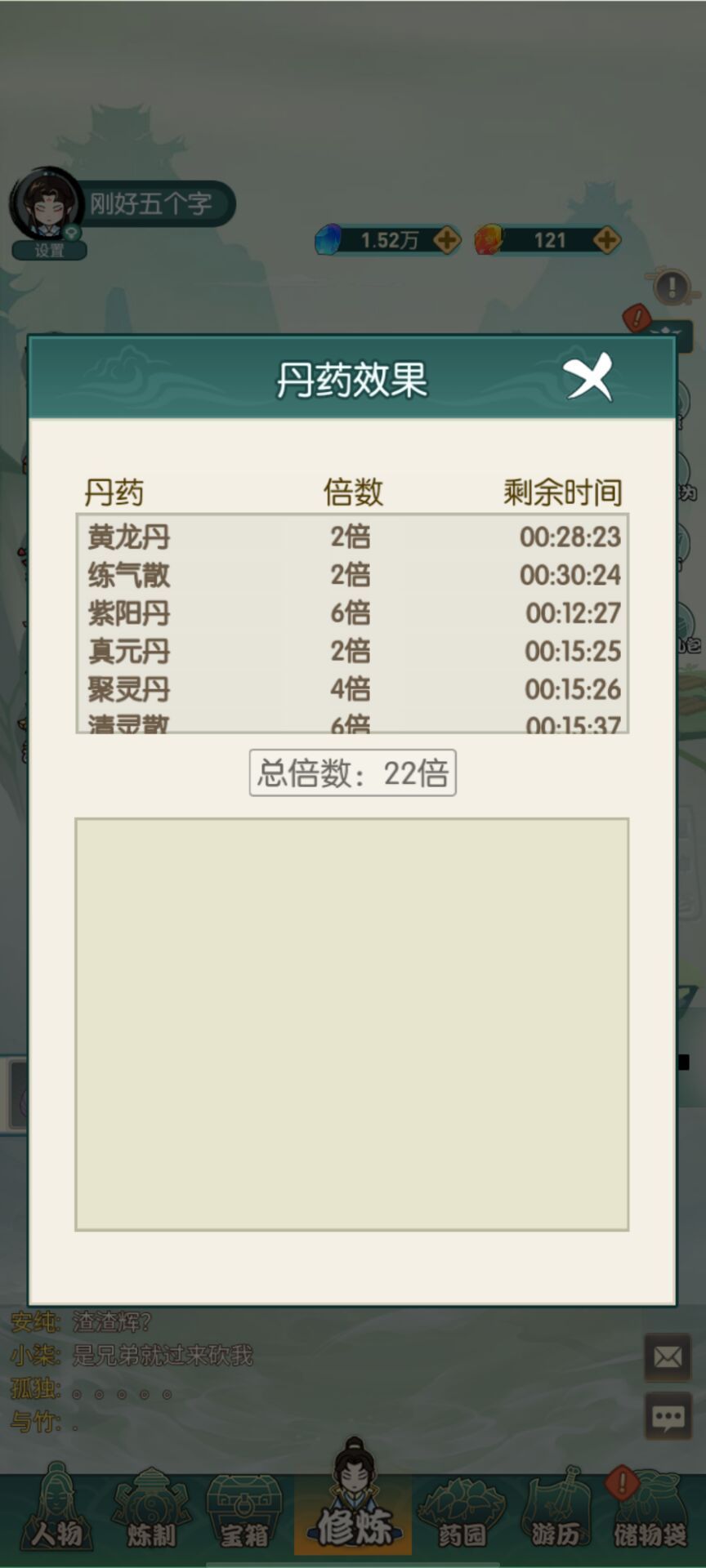 (比如图中的筑基药效10倍+结丹药效12倍=22倍)
