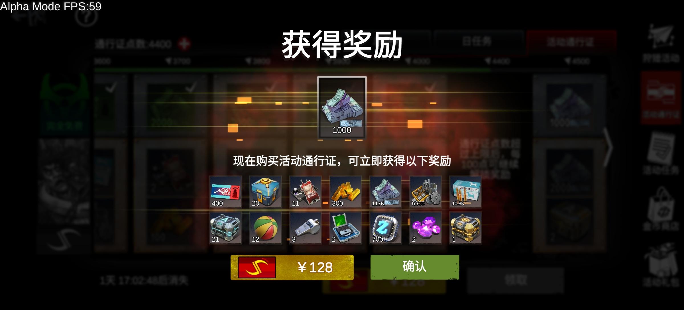 本次狩猎同样加入通行证,总任务中增加3项内容,其中挑战传奇及以上难度关卡达到一定次数(重复挑战胜利也算),可获得模组宝箱奖励。通行证4000分即可获得所有重要奖励,汇总如下: