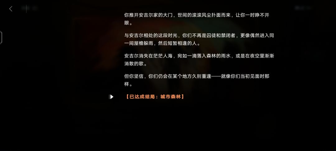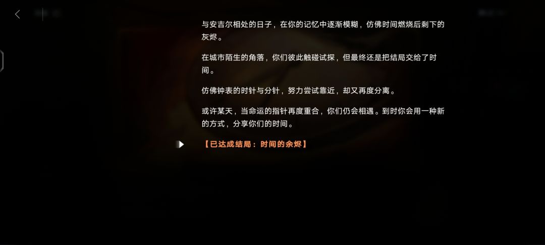 结局1:时间的余烬——不接取任何委托,不玩游戏,点部分对话,结束时好感度不到1600。