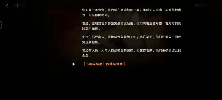 结局3:囚徒与金鱼——除上述两种结局条件之外的所有情况,任何好感度和存钱都可达成。