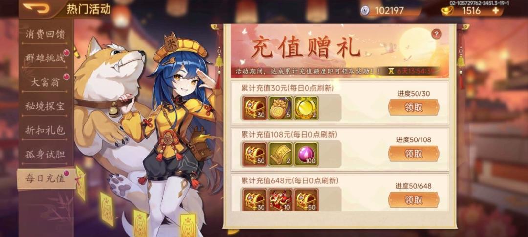 活动内容:活动期间,每日充值达成额度即可领取奖励!