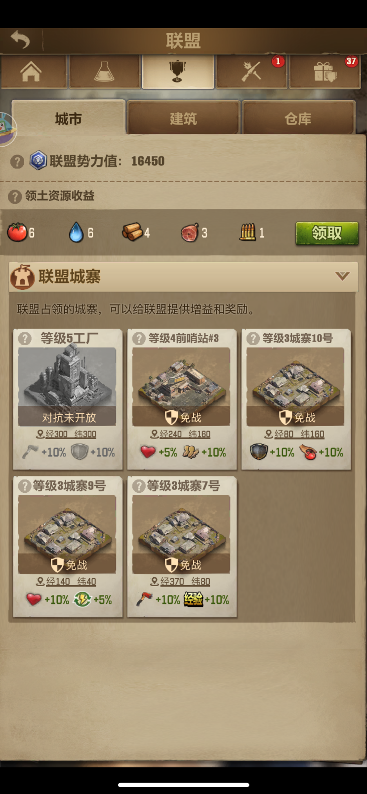 一个强大的联盟,将会占领城寨和前哨站 每日根据占领时间即可获取领土资源,城寨占领达到一定数量即可获得相应奖励,累计数量越多奖励越丰富。