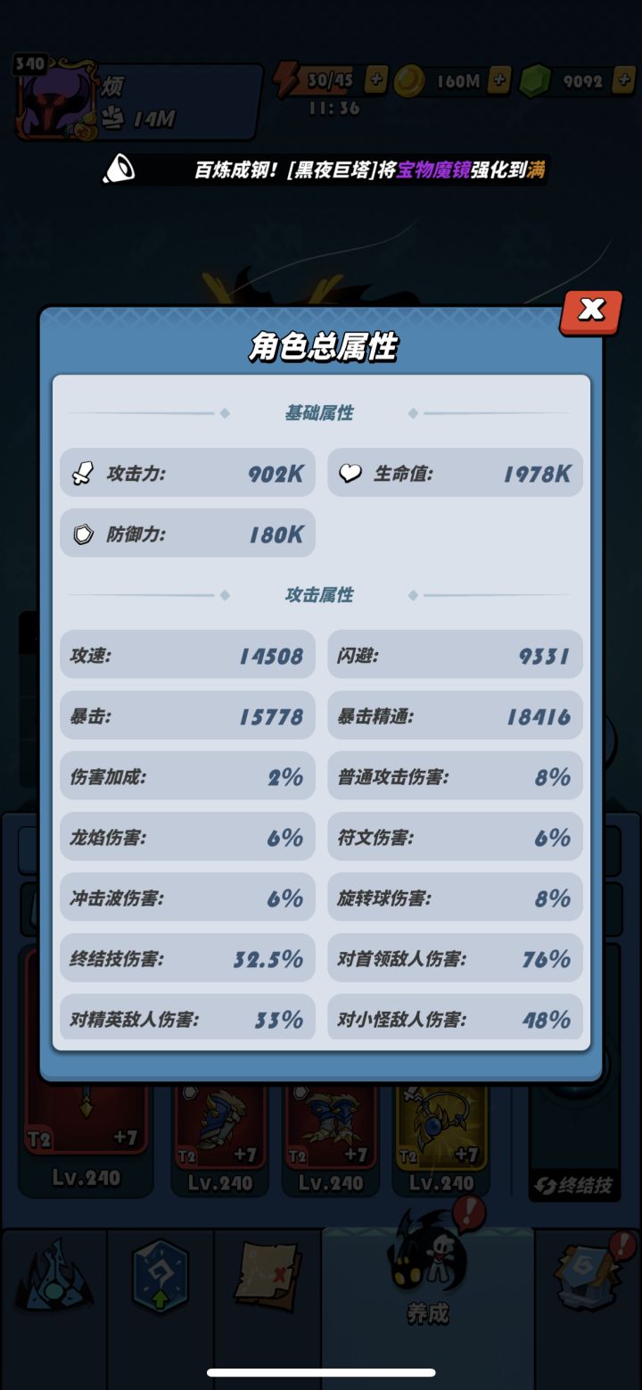 大前提装备精炼等级240级哦