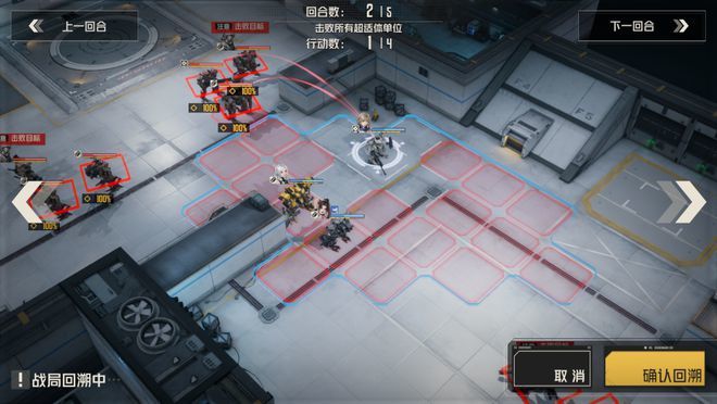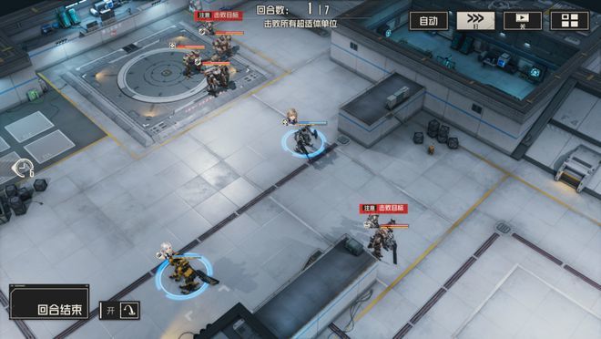 第4回合开始后,我们分别点掉左上战术家敌人的腿部,然后再一下右侧战术敌人的躯干,结合则站在上图中的位置结束第4回合,最后第5回合开始后直接点掉两个战术敌人的躯干即可完成无伤+5回合+同一回合干掉两个战术敌人这3个成就任务。