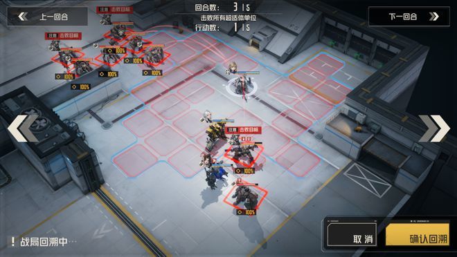 第3回合西尔维娅往上走用最4AP技能,站在最远距离攻击最上方超适体敌人的躯干,然后往下折回,白月则用碎月干掉右下方的超适体敌人,虹如果被小兵定住的话就在原地站着即可,闪避了的话就可以到白月的左侧站着,第3回合结束时的站位参考上图。