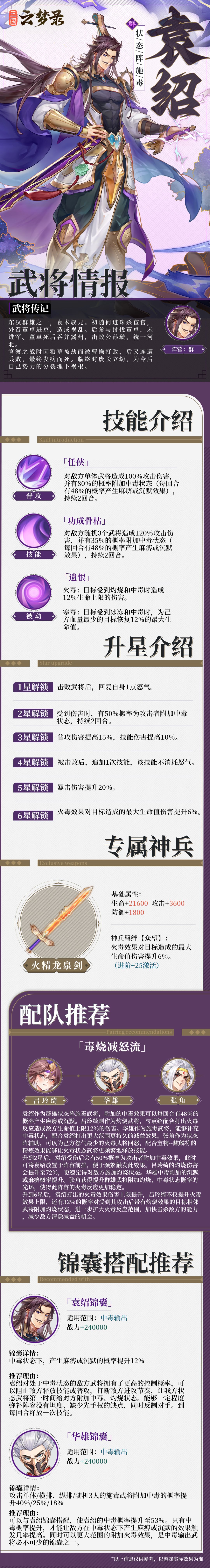 在我们《三国云梦录》中,袁绍是一名能极大削弱对方战力的武将。在战斗中,他能不断向敌人施加中毒状态,对敌人造成持续的减益效果。可谓是:减益持久不停,敌人寸步难行!那么接下来让我们一起来看看这位武将的详细介绍吧!