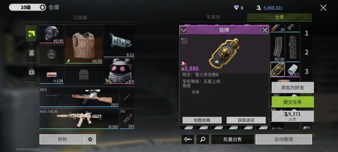 在对局中,我们的铭牌随着军衔的不同,其样式也不尽相同。一般来说,我们拿到的铭牌除了可以用来提升军衔,直接售卖之外,还有一些特殊的撤离点是对铭牌有消耗的,在对局中各位萤火虫也请多加留意。我怕们的一些任务也是对铭牌有需求的,大家可以带出去提交。最后,有了对方的铭牌,大家也可以通过名牌加对方为好友,正所谓不打不相识,社交达人说不准就会收获你们的萤火搭子!