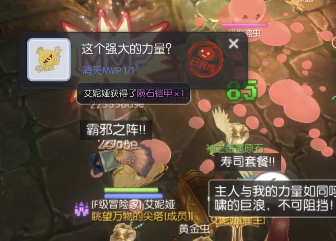 37级物理攻击966,吃水灵石头,自动普通攻击、天使之赐福和霸邪,购买设置好自动红瓶蓝瓶,料理吃饱,四只猫准备好,就能单刷黄金虫了。注意的是,后面黄金虫会召唤小怪,硬直跑开使用霸邪加重拳击退它们即可。